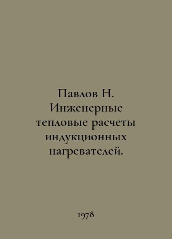 Pavlov N. Engineering thermal calculations of induction heaters. In Russian /Pavlov N. Inzhenernye teplovye raschety induktsionnykh nagrevateley. M Energy 1978.You are welcome to reach out to us for a detailed description of the copies currently available. SKUalbf903595ac85f53da.