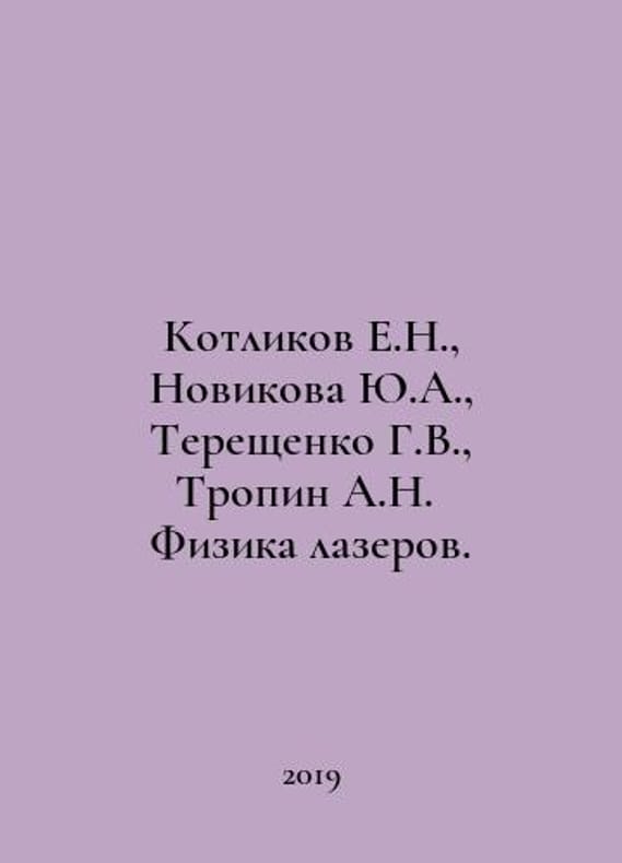 E.N. Kotlikov, Yu.A. Novikova, G.V. Tereshchenko, A.N. Tropin Laser Physics. In Russian /Kotlikov E.N., Novikova Yu.A., Tereshchenko G.V., Tropin A.N. Fizika lazerov. Educational and methodological manual. Edited by E.N. Kotlikov L GUA 2019. You are welcome to reach out to us for a detailed description of the copies currently available. Delivery of this book may take longer than usual including extended processing and pre-shipping time, no expedited shipping is available. Please advise us if you have a set date or a deadline to receive your order. SKUalbf9429c38d9d3f54e