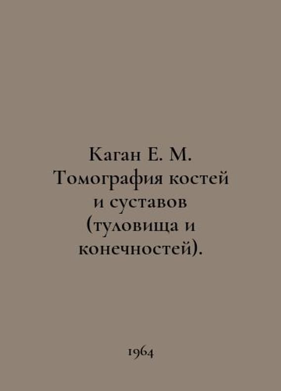 Kagan E. M. Tomography of bones and joints (torso and limbs). In Russian /Kagan E. M. Tomografiya kostey i sustavov (tulovishcha i konechnostey). M. Medicine 1964..You are welcome to reach out to us for a detailed description of the copies currently available. Delivery of this book may take longer than usual including extended processing and pre-shipping time, no expedited shipping is available. Please advise us if you have a set date or a deadline to receive your order. SKUalbfb2d33b8fde06b5c