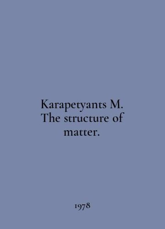 Karapetyants M. The structure of matter. In English /Karapetyants M. The structure of matter. Karapetyants M. The structure of matter. 1978.You are welcome to reach out to us for a detailed description of the copies currently available. Delivery of this book may take longer than usual including extended processing and pre-shipping time, no expedited shipping is available. Please advise us if you have a set date or a deadline to receive your order. SKUalbfb373020ee399110
