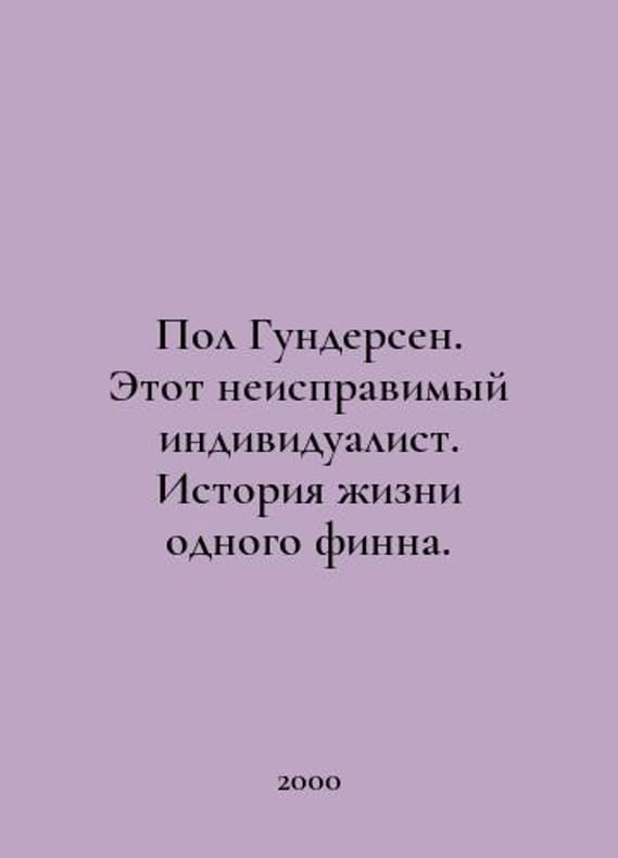 Paul Gundersen. This is an incorrigible individualist In Russian /Pol Gundersen. Etot neispravimyy individualist. Istoriya zhizni odnogo finna. Translated from English by K.Burmistrov. M.: BBI Biblical and Theological Institute 2000..You are welcome to reach out to us for a detailed description of the copies currently available. Delivery of this book may take longer than usual including extended processing and pre-shipping time, no expedited shipping is available. Please advise us if you have a set date or a deadline to receive your order. SKUalbfbb4e95ed1c22fbd