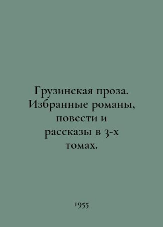 Georgian prose. Selected novels, short stories and short stories in 3 volumes. In Russian /Gruzinskaya proza. Izbrannye romany, povesti i rasskazy v 3-kh tomakh. T.1.5. the first half of the 19th century, T.2.The second half of the 19th century, T.3.The beginning of the 20th century, M. HudLyth 1955. You are welcome to reach out to us for a detailed description of the copies currently available. Delivery of this book may take longer than usual including extended processing and pre-shipping time, no expedited shipping is available. Please advise us if you have a set date or a deadline to receive your order.SKUalbfd09ab6d65307489