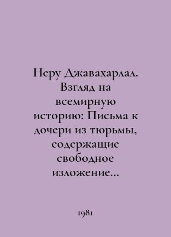 Nehru Jawaharlal. A look at world history. Letters to his daughter from prison, sharing a free narrative for youth In Russian /Neru Dzhavakharlal. Vzglyad na vsemirnuyu istoriyu. Pisma k docheri iz tyurmy, sodezhashchie svobodnoe izlozhenie istorii dlya yunoshestva. V 3 tt. Translated from English: introduction of R.A.Ulyanovsky by M. Progress 1975. You are welcome to reach out to us for a detailed description of the copies currently available. SKUalb7c66afd63535ca00.