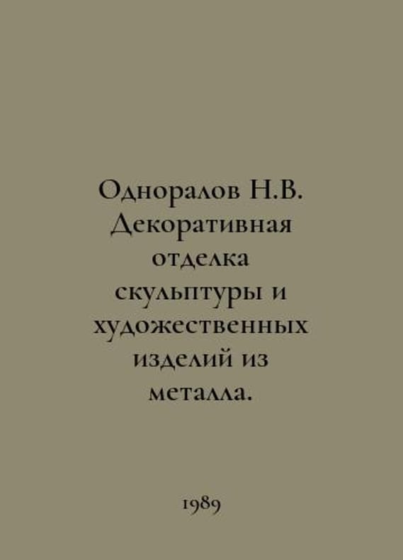 Monoralov N.V. Decorative decoration of sculpture and art products made of metal. In Russian /Odnoralov N.V. Dekorativnaya otdelka skulptury i khudozhestvennykh izdeliy iz metalla. Moscow: Fine Arts. 1989. You are welcome to reach out to us for a detailed description of the copies currently available. SKUalbfe3d5b5a98b93334.