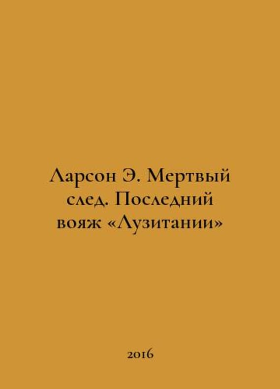 Larson E. Dead Trace: Lusitanias Last Voyage. In Russian /Larson E. Mertvyy sled. Posledniy voyazh Luzitanii M. ACT 2016. You are welcome to reach out to us for a detailed description of the copies currently available. SKUalbfeebb56eb6c7197d.
