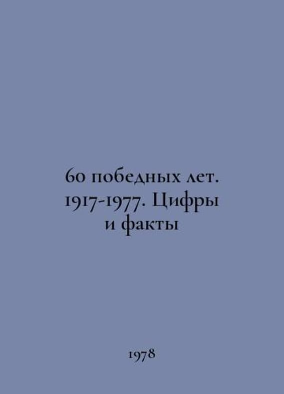 60 victorious years. 1917-1977. Facts and figures In Russian /60 pobednykh let. 1917-1977. Tsifry i fakty Issue 2 M Politizdat 1978.You are welcome to reach out to us for a detailed description of the copies currently available. SKUalbfeef6cf010a0d0b4.