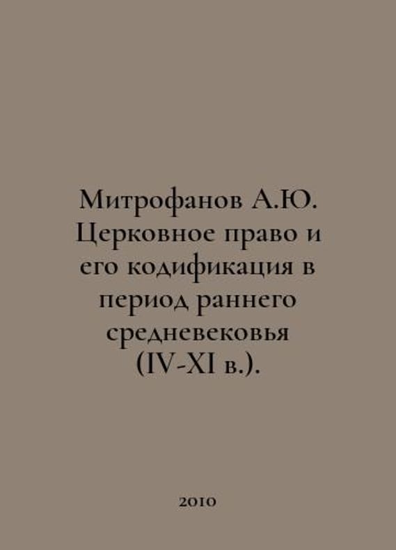 Mitrofanov A.Yu. Church Law and its Codification in the Early Middle Ages (IV-XI centuries). In Russian /Mitrofanov A.Yu. Tserkovnoe pravo i ego kodifikatsiya v period rannego srednevekovya (IV-XI v.). Moscow: Publishing House of Krutitsky Domodedovo 2010..You are welcome to reach out to us for a detailed description of the copies currently available. Delivery of this book may take longer than usual including extended processing and pre-shipping time, no expedited shipping is available. Please advise us if you have a set date or a deadline to receive your order. SKUalbff2562629c9968ab