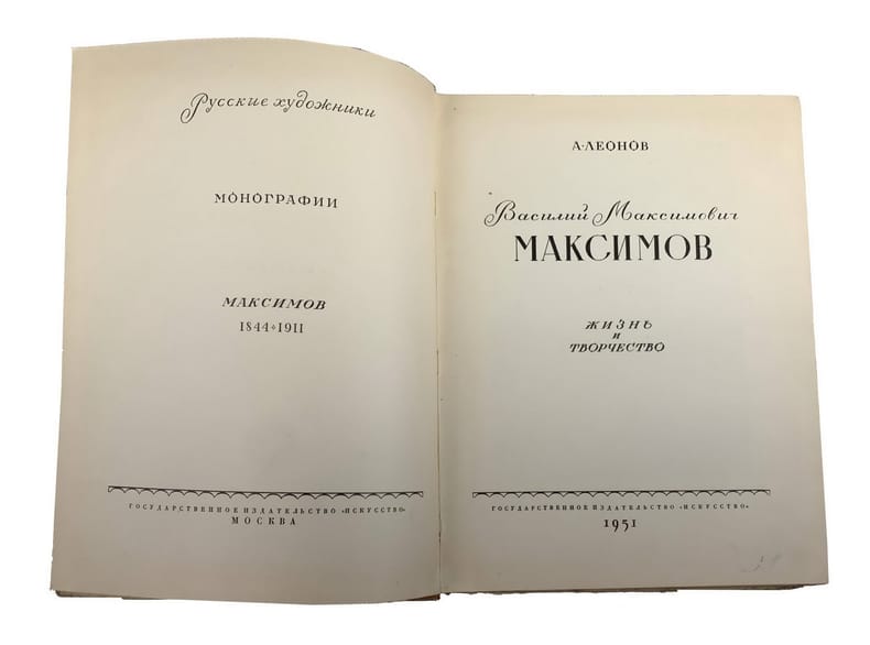 "In Russian. Short description: A. Leonov. Vasily Maksimovich Maksimov: Life and Creativity. Publisher: State Publishing House ""Iskusstvo,"" Moscow, 1951. Vasily Maksimovich Maksimov (January 17 (29), 1844, Lopino Village, near Novaya Ladoga December 18 (1), 1911, Petersburg) was a Russian artist, a member of the Peredvizhniki (Wanderers), and a genre painter. In 1863, he entered the Imperial Academy of Arts. While attending its classes, he was awarded two small silver medals in 1864 and 1865 for his achievements in drawing and painting from nature. He also created the painting ""Sick Child,"" which earned him a gold medal in 1865, awarded to those who excelled in expression. Upon leaving the academy in 1866, he was given the title of a non-class artist, and in 1870, he was promoted to an academician. From 1872, he became a member of mobile art exhibitions, showcasing his paintings depicting scenes of rural life. His best works, ""The Arrival of the Sorcerer at a Peasant Wedding"" (1875) and ""Family Division in Peasant Life"" (1876), are housed in the Tretyakov Gallery in Moscow. This biographical sketch is accompanied by photographic material, including color and tonal reproductions of the artist's works on separate pages. Please feel free to contact us for a detailed description of the copies available. SKUMS002108"