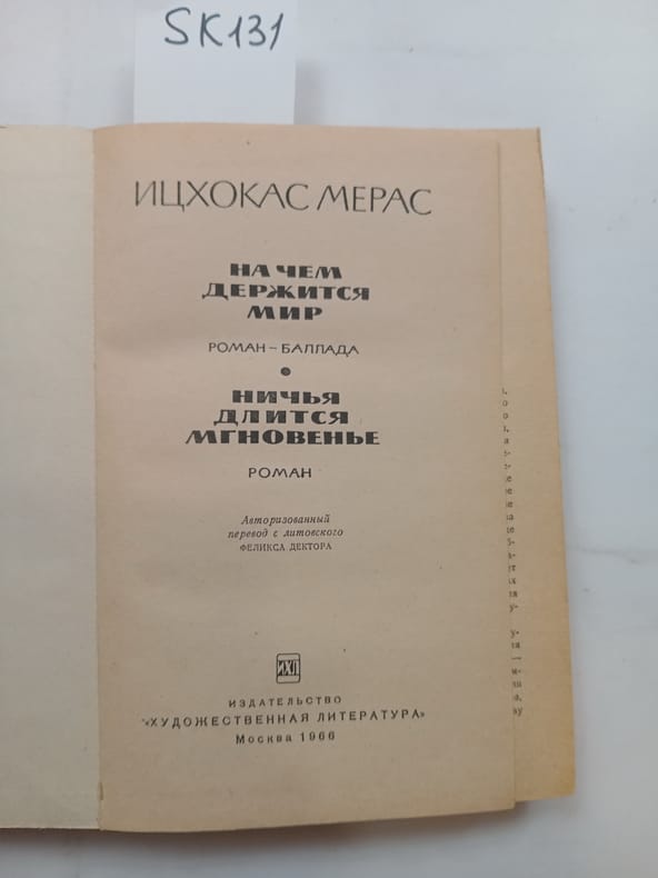 In Russian. Short description: Meras, Yitzhokas. What holds the world together, the draw lasts for a moment. Moscow: Art Literature, 1966. Please feel free to contact us for a detailed description of the copies available. SKU lom-SK000131