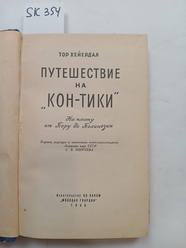 In Russian. Short description: Heyerdal, Thor. Journey to Kon Tiki. The Young Guard, 1956. Please feel free to contact us for a detailed description of the copies available. SKU lom-SK000354