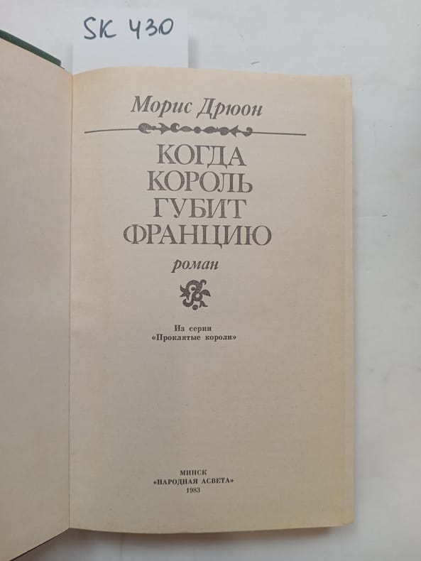 In Russian. Short description: Dryon, M., When the King Destroys France [Kogda korol' gubit Franciyu]. Leningrad: The People's Party, 1983 / . . : , 1983. Please feel free to contact us for a detailed description of the copies available. SKU lom-SK000430