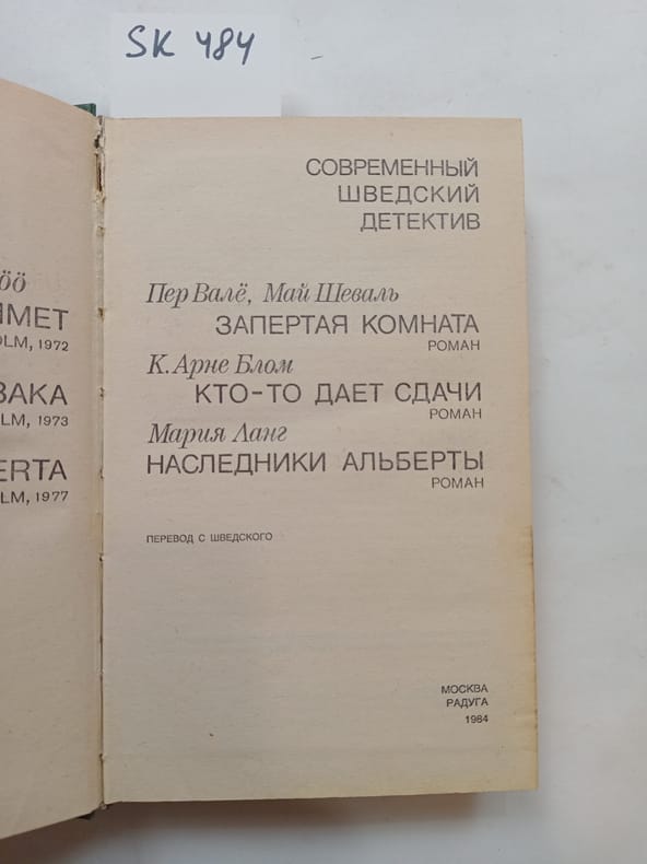 In Russian. Short description: Vale, P., Cheval, M., Arne, Blom, C., Lang, M., A modern Swedish detective. Locked room. Someone gives up. [Sovremennyj shvedskij detektiv.Zapertaya komnata. Kto-to daet sdachi. Nasledniki Al'berty]. Moscow: Rainbow, 1984. Please feel free to contact us for a detailed description of the copies available. SKU lom-SK000484