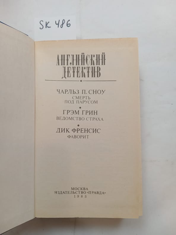 In Russian. Short description: Snow, P., Charles, Green, G., Francis, D., An English detective. Death Under Sail. The Office of Fear. Favorite [Anglijskij detektiv. Smert' pod parusom. Vedomstvo straha. Favorit]. Moscow: The Truth, 1983. Please feel free to contact us for a detailed description of the copies available. SKU lom-SK000486