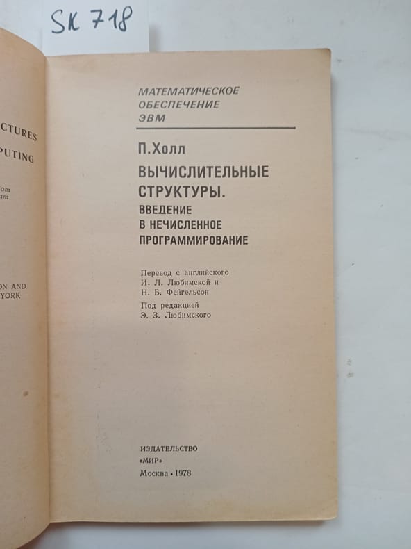 In Russian. Short description: Hall, P, Computational Structures. An Introduction to Innumerable Programming [Vychislitel'nye struktury. Vvedenie v nechislennoe programirovanie]. Moscow: World, 1978. Please feel free to contact us for a detailed description of the copies available. SKU lom-SK000718