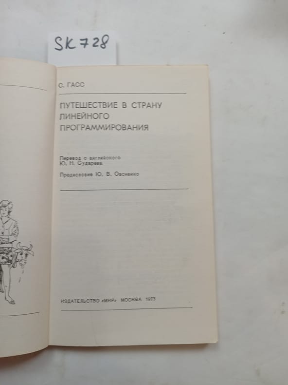In Russian. Short description: Gass, S, Journey to the Land of Linear Programming [Puteshestvie v stranu linejnogo programmirovaniya]. Moscow: World, 1973. Please feel free to contact us for a detailed description of the copies available. SKU lom-SK000728
