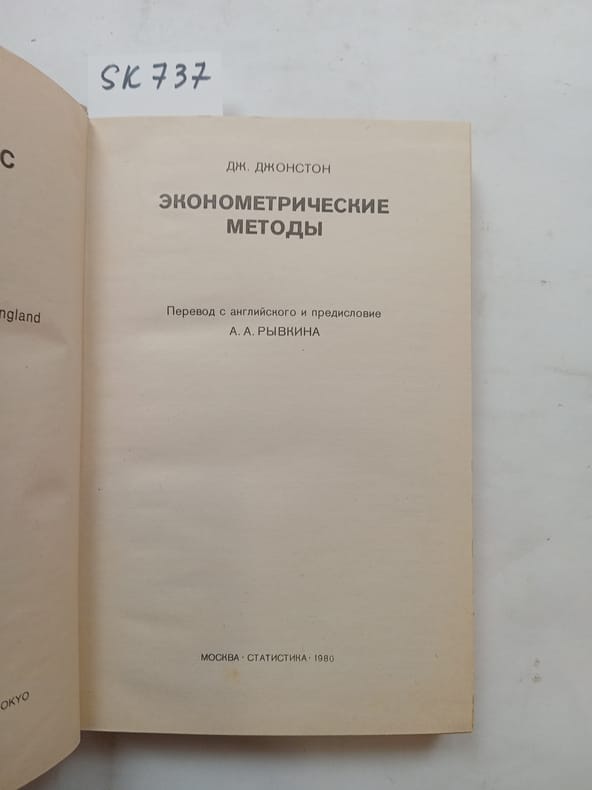 In Russian. Short description: Johnson, J, Economic Methods [Ekonomicheskie metody]. Moscow: Statistics, 1980. Please feel free to contact us for a detailed description of the copies available. SKU lom-SK000737