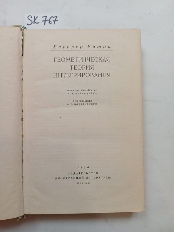 In Russian. Short description: Whitney Hassler, Geometric integration theory [Geometricheskaya teoriya integrirovaniya]. Moscow: Foreign Literature Publishing House, 1960. Please feel free to contact us for a detailed description of the copies available. SKU lom-SK000767