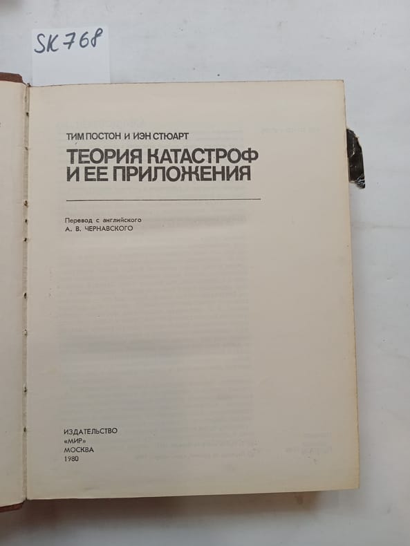 In Russian. Short description: Poston, T., Stewart, I., Disaster theory and its applications [Teoriya katastrof i ee prilozheniya]. Moscow: World, 1980 / ., . . : , 1980. Please feel free to contact us for a detailed description of the copies available. SKU lom-SK000768
