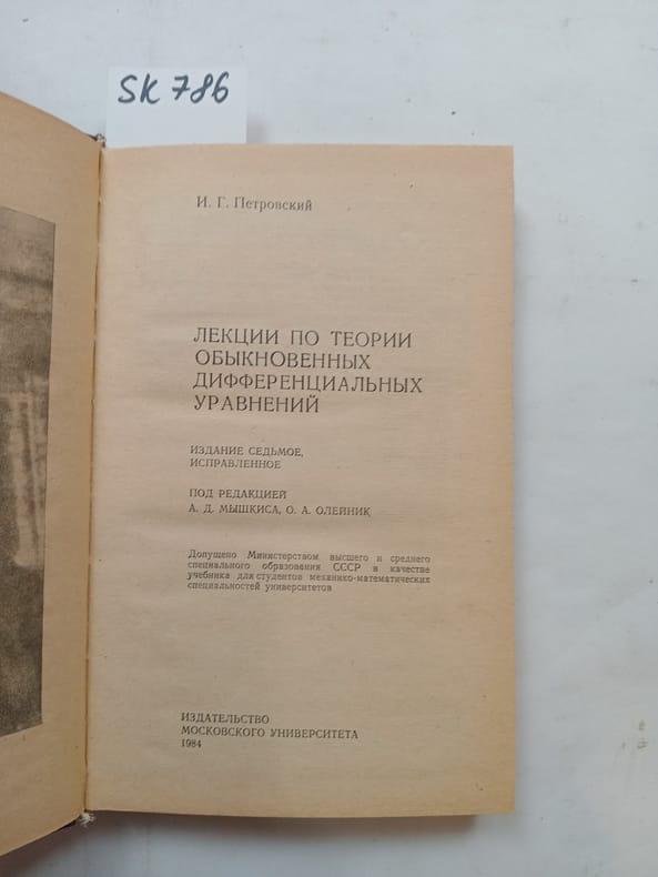 In Russian. Short description: Petrovsky, I. G., Lectures on the theory of ordinary differential equations [Lekcii po teorii obyknovennyh differencial'nyh uravnenij]. Moscow University Publishing House, 1984. Please feel free to contact us for a detailed description of the copies available. SKU lom-SK000786