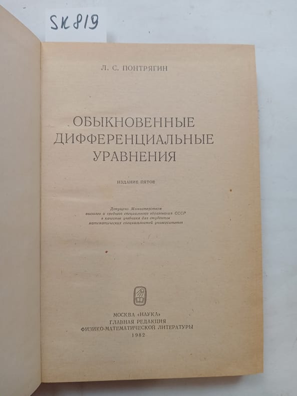 In Russian. Short description: Pontryagin,L. S., Ordinary differential equations [Obyknovennye differencial'nye uravneniya]. Moscow: Science, 1982. Please feel free to contact us for a detailed description of the copies available. SKU lom-SK000819