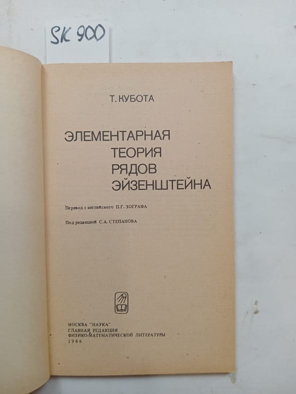 In Russian. Short description: Kubota, T., Eisenstein's Elementary Series Theory [Elementarnaya teoriya ryadov Ejzenshtejna]. Moscow: Science, 1986 / . . : , 1986. Please feel free to contact us for a detailed description of the copies available. SKU lom-SK000900