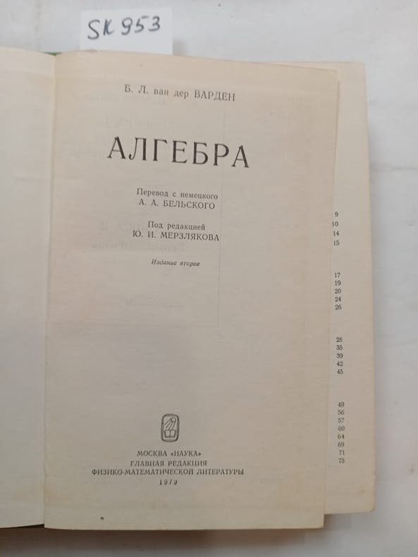 In Russian. Short description: B. L. van der Warden, Algebra [Algebra]. Moscow: Science, 1979. Please feel free to contact us for a detailed description of the copies available. SKU lom-SK000953