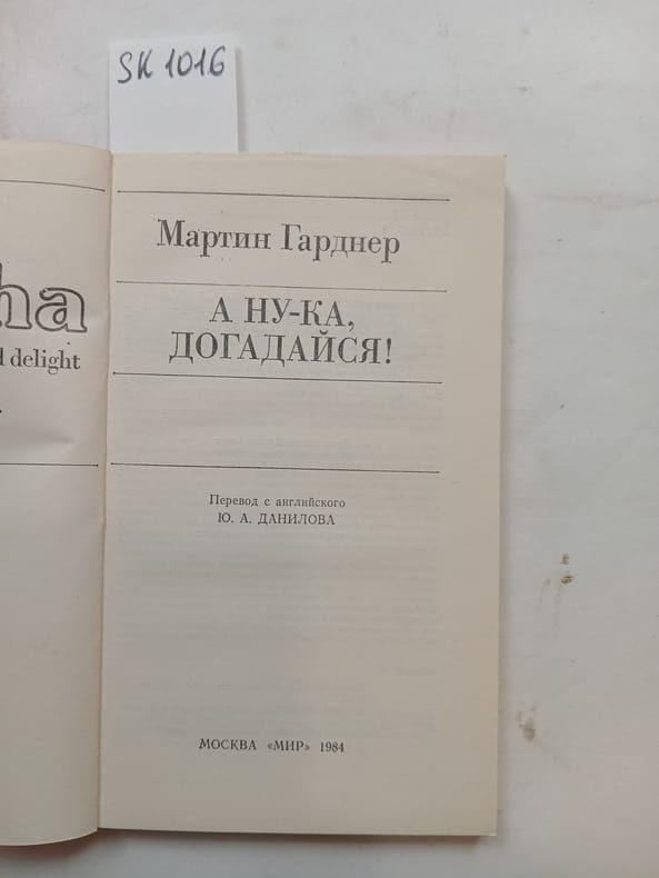 In Russian. Short description: Gardner,Martin, Well, guess what! [A nu-ka, dogadajsya!]. Moscow: World, 1984. Please feel free to contact us for a detailed description of the copies available. SKU lom-SK001016
