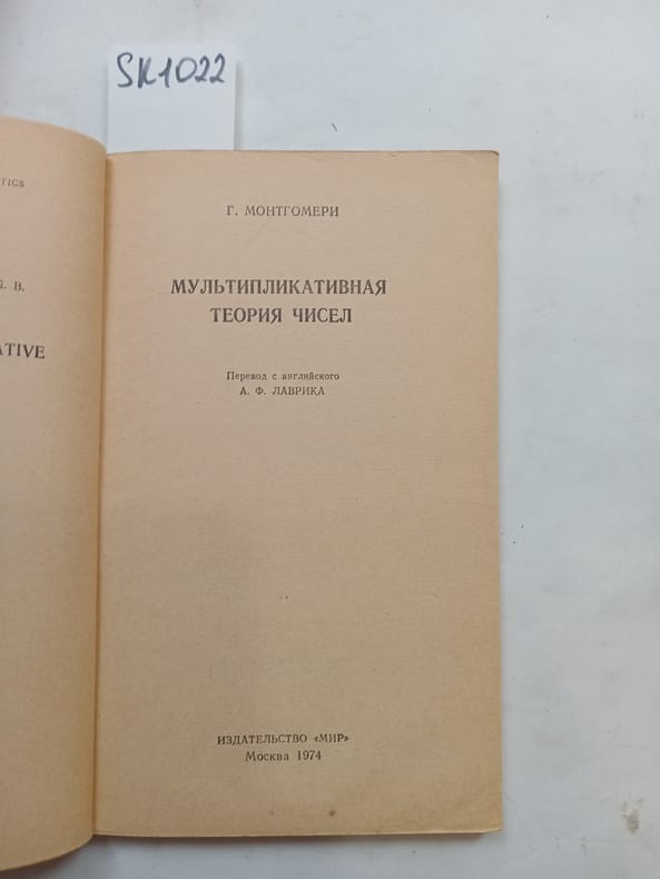 In Russian. Short description: Montgomery, G, Multiplicative number theory [Mul'tiplikativnaya teoriya chisel]. Moscow: World, 1974. Please feel free to contact us for a detailed description of the copies available. SKU lom-SK001022