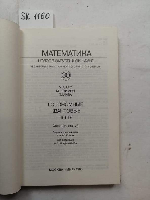 In Russian. Short description: Sato, M., Dzimbo, M., Mira, T., Hungry Quantum Fields [Golomnye kvantovye polya]. Moscow: World, 1983. Please feel free to contact us for a detailed description of the copies available. SKU lom-SK001160