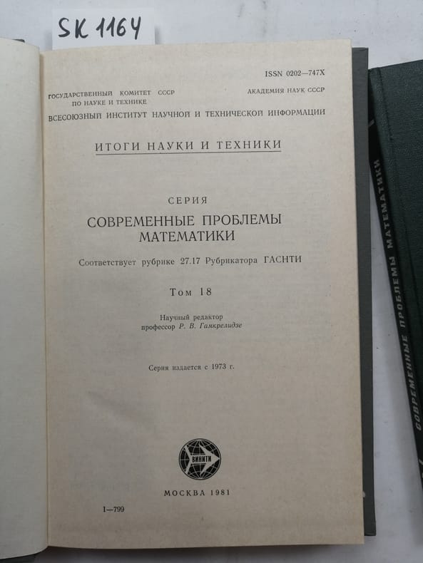 In Russian. Short description: The Modern Problems of Mathematics series. Recent Achievements. Volumes 18, 25, 32 [Seriya Sovremennye problemy matematiki.Novejshie dostizheniya. Tom 18, 25, 32]. Moscow: VINITY, 1985 / . . 18, 25, 32. : , 1985. Please feel free to contact us for a detailed description of the copies available. SKU lom-SK001164