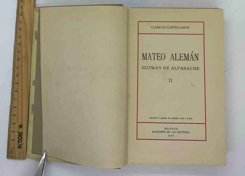 Mateo Aleman, Guzman de Alfarache Tomo I, 1927, Madrid. In Spanish. Please feel free to contact us for a detailed description of the copies available. SKUZLO000682