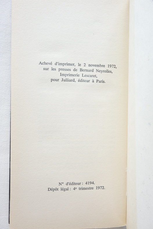 Paris Julliard. 1972 126 pp. In-12. Broché. En bon état. 1 volume. Collection "Idée fixe".ÉDITION ORIGINALE sans grand papier.