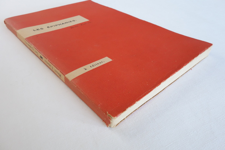 Les épiphanies - Henri Pichette - K éditeur 1948 1 volume in-8 (format 16 x 24,5) - broché, couverture souple, pages non coupées - 137 pp. - édition originale sur papier courant Exemplaire en bon état, couverture propre, usure et fentes au niveau de la coiffe de queue, rousseurs claires sur la tranche de tête, intérieur frais.