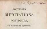 première édition in-18,Vicaire IV colonne 955/956, "Les mérites nouveaux qu'on avait admirés dans les Méditations poétiques de Lamartine se retrouvèrent dans ses Nouvelles Méditations poétiques, avec plus de richesse dans la forme peut-être, avec plus de grâce voluptueuse. Essentiellement spiritualiste, religieux, avec une hardeur sentimentale qui est éminemment lyrique, Lamartine, a représenté la Nature largement, sans aucune préoccupation d'exactitude descriptive, mais comme une chose toute pénétrée d'âme, où sa sympathie se fond et s'anéantit. La forme des Méditations, souvent molle et fluide, atteint, quand elle est soutenue par un sentiment profond, la plus forte et la plus suave harmonie.Les poèmes les plus remarquables de ces Nouvelles Méditations sont : Ischia, la Sagesse, les Préludes et le Crucifix....trés rare....n'est pas à la Bibliothèque Nationale...... en bon état malgré le petit défaut signalé (very good condition in spite of the small defect indicated).
