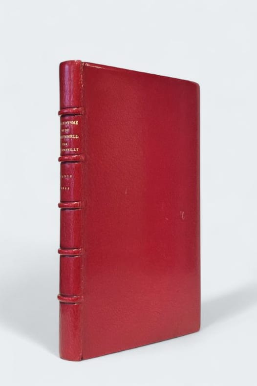 Paris, Alphonse Lemerre, 1879. 3e édition. Signé par Barbey d'Aurevilly. Petit in-12, 165 x 103 mm, (x) 127 pp. Reliure demi-maroquin lie-de-vin, dos à 4 nerfs pointillés dorés, nom d'auteur et titre frappés en caractères d'imprimerie dorés séparés d'un trait doré, doubles caissons à fleurons et motifs de coin symétriques dorés, filets dorés en coiffe et queue. Plats marbrés, pages de gardes vivement marbrées multicolores, couvertures conservées. Tranche supérieure dorée. Envoi autographe à l'encre rouge sur l'une des gardes blanches : "à madame la comtesse de Molènes * un rien de la plume qui, pour elle, voudrait pouvoir tout. Jules Barbey d'Aurevilly". Portrait de l'auteur à 20 ans en frontispice sous papier de soie, dédicace à César Daly, préface de la seconde édition, portrait de Brumel en frontispice du texte. Bandeaux, lettrines et culs-de-lampes. Quelques feuillets et catalogue de la Petite bibliothèque littéraire de l'éditeur, non paginés, en fin d'ouvrage. "À la fois biographie et un essai philosophique, l'ouvrage mêle références historiques et détails anecdotiques et se propose de dresser le portrait d'un homme qui soumit à son goût, pendant vingt ans, la high class londonienne. Brummell (1778-1840), "arbitre suprême de l'élégance", fut admiré tant par le futur roi Georges IV que par le poète Lord Byron. Jusqu'au jour où, criblé de dettes, il dut s'exiler en France. Loin de sa cour, Brummell connut vite la déchéance. Ruiné, malade, il séjourna en prison, puis à l'hospice où il mourut dément. Brummell fut la plus haute et la plus tragique incarnation du dandysme. Seul un autre dandy comme Barbey d'Aurevilly pouvait relater cette destinée." (Grelé, Barbey. Essai de bibliographie générale, 1904, p. 37)
