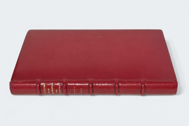 Deuxième édition légèrement remaniée, la première mise dans le commerce. Elle comprend une préface et quelques notes inédites, dont une assez longue concernant le comte d'Orsay. SÉDUISANT EXEMPLAIRE EN PLEIN MAROQUIN DE L'ÉPOQUE SIGNÉ THIBARON-JOLY. Cette condition est particulièrement rare. Il a appartenu à l'homme de lettres Jules Le Petit, qui avait réuni une époustouflante collection consacrée aux écrivains du XIXe siècle (cat. 1919, n° 144). On le retrouve ensuite dans une vente du 20 mai 1948 (Léon Lascoutx ?) puis chez Pierre Collin, qui avait le goût des exemplaires parfaits. Aucun de ces bibliophiles ne possédait d’ex-libris.