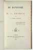 BARBEY d'AUREVILLY Jules, Du Dandysme et de Georges Brummell. à Paris, Alphonse Lemerre éditeur, 1879. Exemplaire relié (155x95mm) demi-chagrin brun à coins, 1f en frontispice le portrait de Barbey d'Aurevilly gravé par Martinez, (x, dédicace à César Daly et Préface), 1f portrait de Georges Brummell gravé par Martinez, 127 pages. Couverture supérieure conservée. Troisième édition. Barbey d'Aurevilly est considéré comme l'un des grands dandys du XIX° siècle avec Georges Brummell, Charles Baudelaire et Oscar Wilde. ''Il n'était propre à être rien de plus, mais aussi rien de moins que le plus grand Dandy de son temps et de tous les temps. Plus spirituel ou plus passionné, c'était Shéridan ; plus grand poète, c'était lord Byron ; plus grand seigneur, c'était lord Yarmouth..Le dandysme est toute une manière d'être, et l'on n'est pas que par le côté matériellement visible. Le dandysme résulte de cet état de lutte sans fin entre la convenance et l'ennui.'' (extrait). Bonne condition.