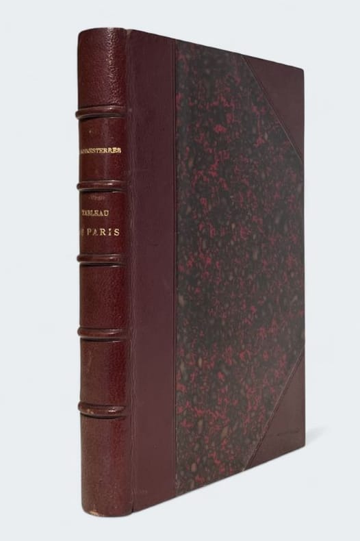Trois volumes in-8°, demi-reliure d’époque, cuir clair, dos lisse orné de faux caissons (avec le titre et l’auteur en lettres dorées sur l’un d’eux), tome 1: 206 pages dont table, tome 2: 220 pages dont table et Avis de l’Editeur in fine, tome 3: 203 pages dont table.L’auteur est bien connu pour son célèbre TABLEAU DE PARIS et son non moins célèbreL’AN 2440, UN REVE S’IL EN FUT JAMAIS. Ici, dans MON BONNET DE NUIT, il s’explique dès son avant propos: “j’ai contracté l’habitude de mettre par écrit tous les soirs, avant de me coucher, ce qui me reste de l’impression de la journée. Ma plume est prête, & ce que j’ai vu,senti, ce que j’ai pensé, entendu, enfin le résultat de mes lectures & de mes conversations, tout se couche sur le papier”... Et qui ajoute un peu plus loin: “Comme j’aime ce genre d ‘écrire, je me plais à le continuer. Il faut qu’un auteur se paie d’avance de ses mains s’il ne veut pas se reduire au rôle d’un créancier abusé; car on ne reçoit quelque fois rien de ce public dédaigneux et frivole, qui nous juge si arbitrairement, et qui, soit qu’il nous loue ou qu’il nous déprécie, n’est jamais à notre mesure”... Malgré quelques très légères traces d’âge, nos 3 exemplaires peuvent être dits en ETAT TRES SATISFAISANT.