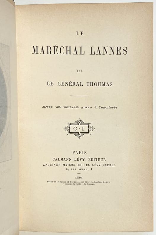 1910 Nevers, Vallière, 1910. in-16° broché, couverture verte imprimée en noir avce les armoiries de Lannes au 1er plat: (12),427pp., portrait en frontispice.