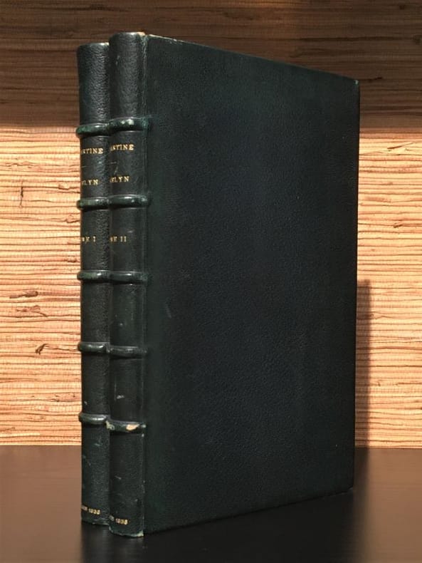Deux volumes in-8 (211 x 136 mm), demi-maroquin vert, coins, dos à cinq nerfs orné, tranches mouchetées (reliure anglaise de l'époque). Edition originale. Tampon Rosstrevor House Library sur la première page de garde. (dos passé, défauts d'usage, coiffes usées, coins émoussés, quelques feuillets mal alignés, rousseurs). // Two octavo volumes (211 x 136 mm), green three-quarter morocco, spine tooled raised on five bands, sprinkled edges (contemporary binding). First edition. Stamp Rosstrevor House Library on first end-paper. (spine faded, defects of use, top and bottom of spine used, corner bumped, some leaves not well lined-up, brownings).