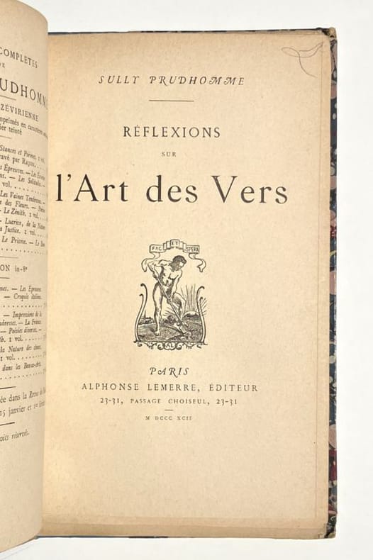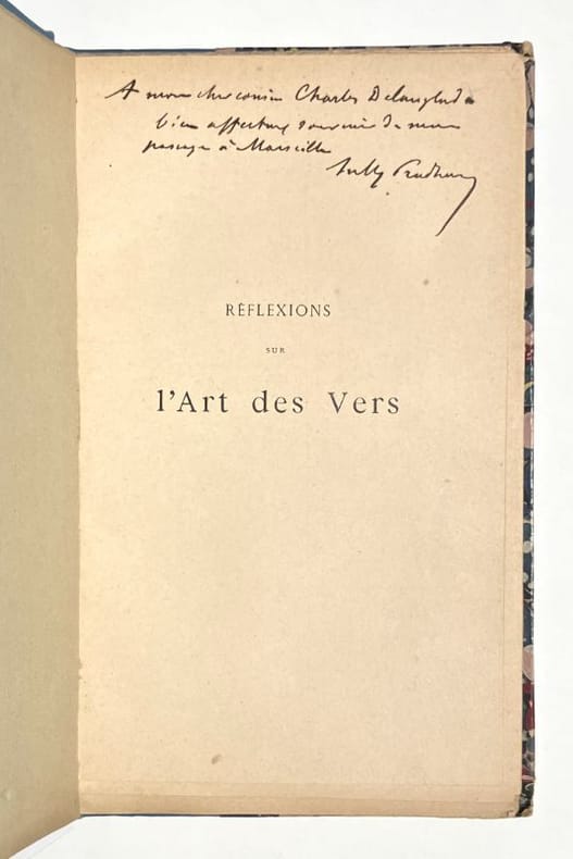 Édition originale. Aujourd'hui délaissé, le poète parnassien Sully Prudhomme (1839-1907) fut le premier lauréat du Prix Nobel de littérature en 1901. Envoi autographe signé : « À mon cher cousin Charles Delanglade, bien affectueux souvenir de mon passage à Marseille, Sully Prudhomme ». Très bon exemplaire. Ex-libris Delanglade et Estelle Nougier.