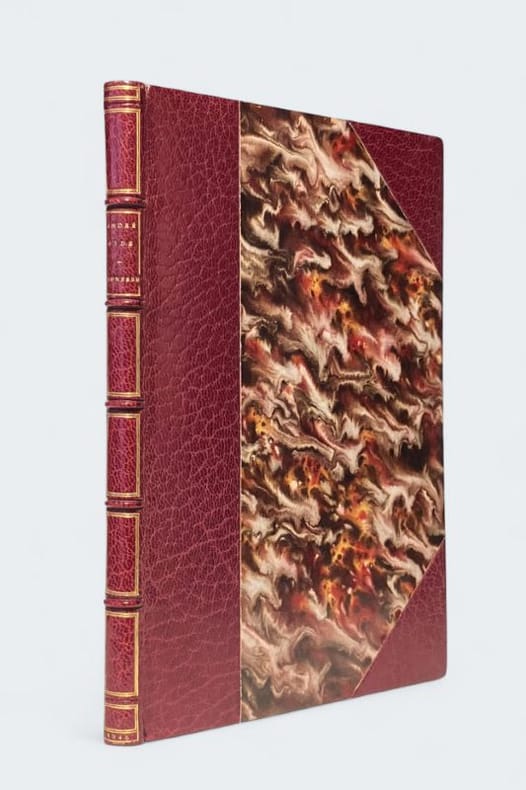 1945 Neuchâtel et Paris, Ides et Calendes, [1945] ; in-8 de 50 pp., [3] ff., demi-maroquin bordeaux à coins, dos à nerfs orné de caissons de filets dorés, tête dorée, non rogné, couverture illustrée et dos (Huser).