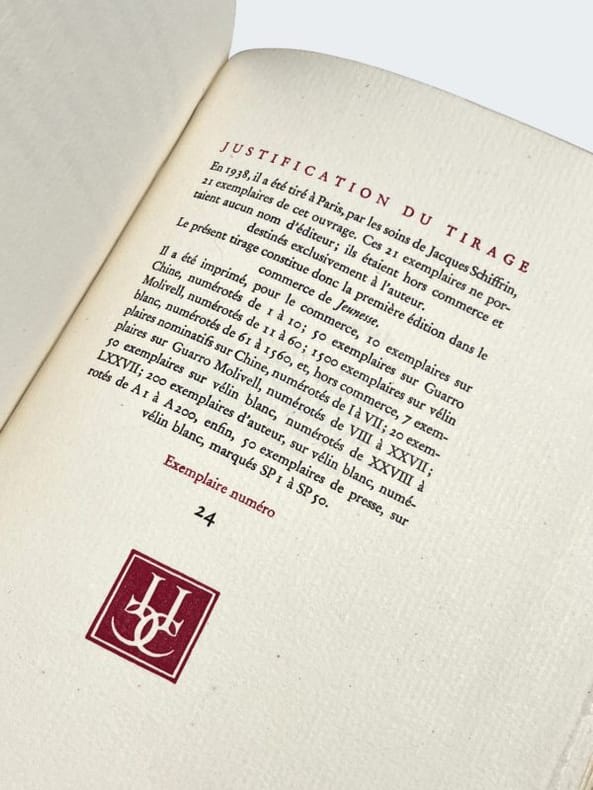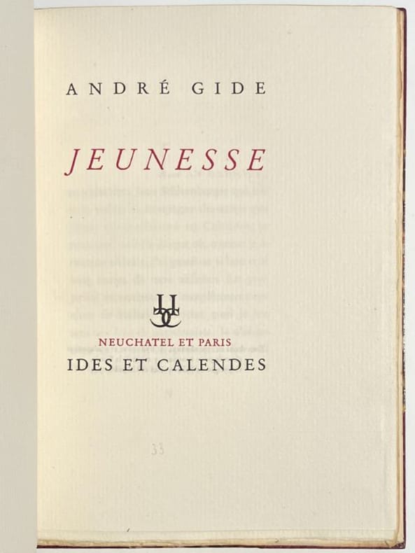 Première édition mise dans le commerce. L'originale n'avait été tirée qu’à 21 exemplaires en 1938. Un des 70 exemplaires sur vergé Guarro Molivell (n° 24), second papier après 17 Chine. Très bel exemplaire provenant de la bibliothèque de Raoul Simonson (1896-1965), premier bibliographe de Gide et bibliophile au goût le plus sûr, avec ex-libris. La couverture est illustrée d'un dessin de Matisse.