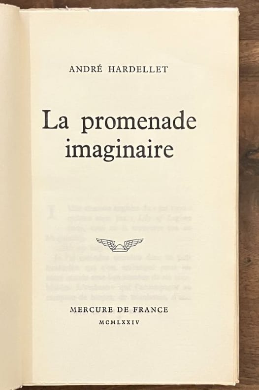 Editions du Mercure de France / Collection " Roue Libre " 1974. In-12 broché de 128 pages au format 11 x 18,5 cm. Belle couverture illustrée d'après une gravure des " Chansons Enfantines ", extraite de l'Imagerie Pellerin - Epinal. Dos carré. Plats et intérieur frais. Superbe état, proche du parfait. Edition originale du dernier livre d'André Hardellet, publié quelques mois après sa mort.