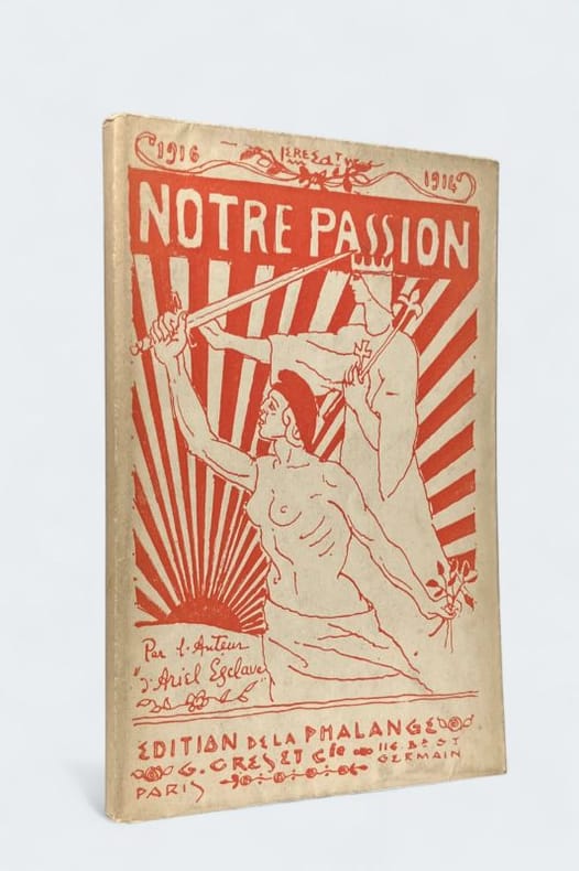 1916 Paris, Éditions de La Phalange, 1916 ; in-12 de 82 pp., [1] f., broché, non coupé, couverture illustrée en rouge.