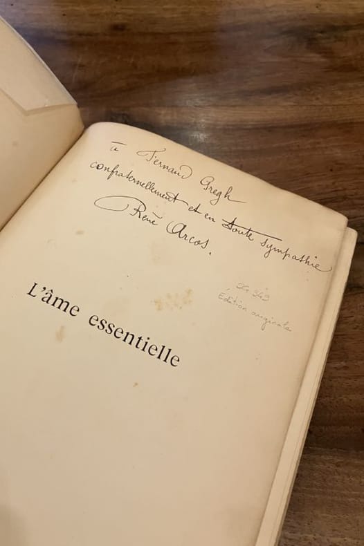 Édition originale du premier livre de René Arcos (1881-1959), un des membres fondateurs du Groupe de l'Abbaye. Tirage à 310 exemplaires, celui-ci un des 300 sur papier alfa. ENVOI AUTOGRAPHE SIGNÉ : « à Fernand Gregh, confraternellement et en toute sympathie ». Second plat de couverture détaché.