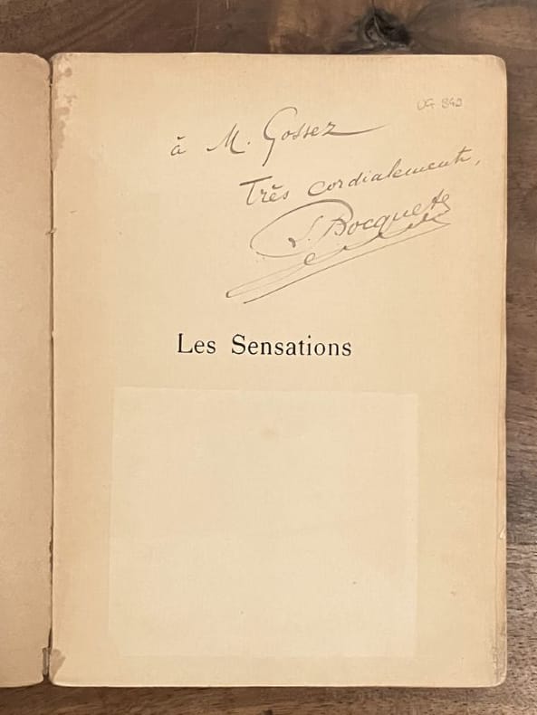 Édition originale du premier livre de Léon Bocquet (1876-1954), qui fondera la revue Le Beffroi à Lille en 1900. ENVOI AUTOGRAPHE SIGNÉ : « à. M. Gossez, très cordialement » ; il s'agit de l'écrivain Alphonse-Marius Gossez (1878-1940), qui prit part à l'aventure du Beffroi. Couverture abîmée, petits manques au dos.