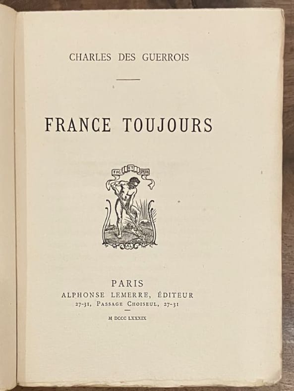P., Lemerre, 1889 (1890 sur la couverture), in 12 broché, 201pp. ; non coupé ; couverture défraichie avec manques.