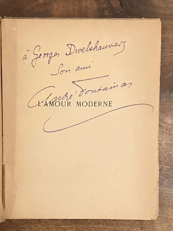 Envoi du traducteur André Fontainas au philosophe Georges Dwelshauvers (1866-1937), passeur de la pensée de Nietzsche en France et en Belgique. Premier plat de couverture détaché, dos abîmé, papier bruni. Sous papier cristal.