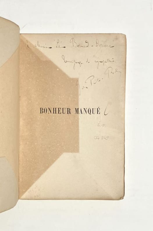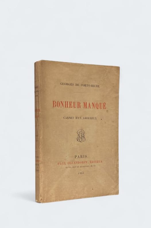 Edition originale pour laquelle il n'est pas fait mention de grands papiers. Reliure en demi maroquin vieux rose à coins, dos à cinq nerfs sertis de pointillés dorés orné de doubles caissons dorés richement agrémentés, date dorée en queue, encadrement de doubles filets dorés sur les plats de papier marbré, gardes et contreplats de papier à la cuve, couvertures conservées, tête dorée. Envoi autographe signé de Georges de Porto-Riche à son éditeur Paul Ollendorff. Bel exemplaire agréablement établi. - Photographies et détails sur www.Edition-Originale.com -